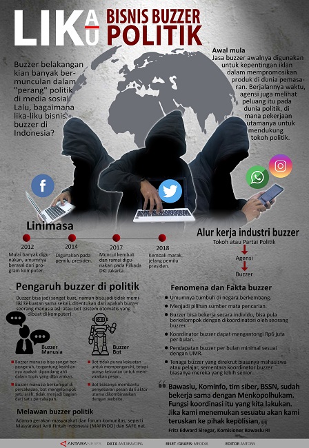 A favourite pastime of Indonesian netizens when scrolling Twitter is ‘spot the buzzer’. They know that some of the posts on their timeline are the work of cyber troops – including influencers, ‘buzzers’ (i.e., fake account operators) and ‘bots’ (i.e., semi-automated robot accounts) – that try to influence public opinion on specific topics and manipulate conversations on social media. As the articles in this edition show, cyber troops have become increasingly common in Indonesia’s cybersphere, and so netizens have become accustomed to their presence and tactics. Yet, the use of cyber troops remains a secretive affair. No political actor will openly admit to employing cyber troops in order to sway public opinion in their favour by spreading disinformation and ‘trolling’ (provoking, insulting, or harassing) or ‘doxing’ (exposing private information with the purpose of slandering) opponents. The work of cyber troops is therefore not only shrouded in mystery, it also carries connotations of underhanded ‘dirty politics’.