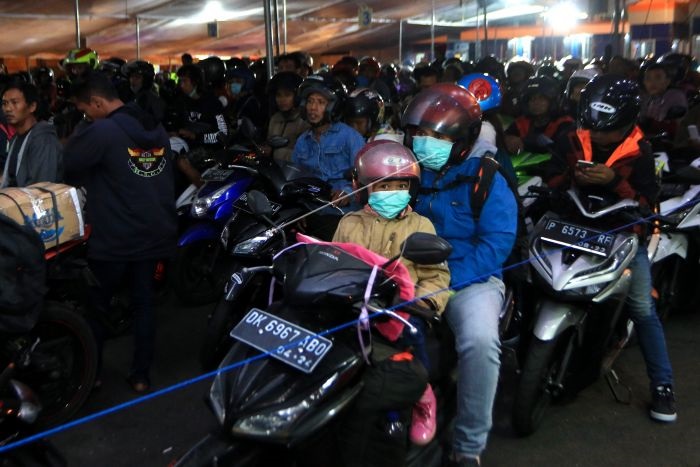 While the government warns of the high risk of travelling by motorcycle, for riders like Sastro, a 31 year old who travels 300 kilometres with his wife and their infant from Jakarta to Brebes in Central Java, financial stresses mean there is no other choice: ‘It is a hard journey, it is indeed. But what can we do?’