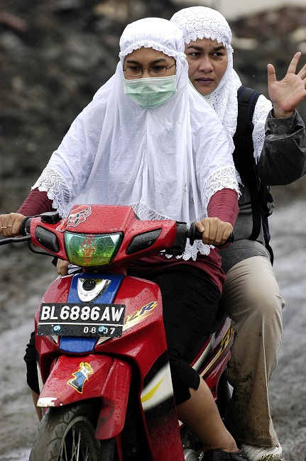 Two women in white hijabs ride a motorbike/ David Mark. Pixabay