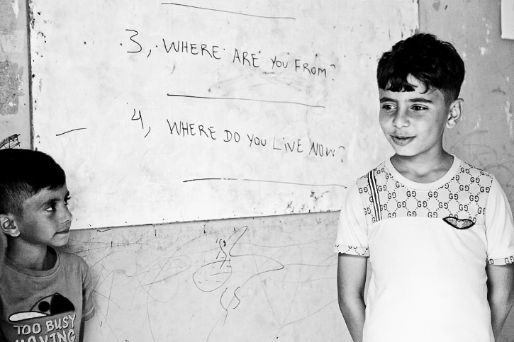 Refugee children learning English at Kalsoom's school, the Cipayung Refugee Educational Center. (Angela Richardson) |