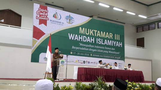 Minister of Religious Affairs, Lukman Hakim Saifuddin, addresses the third Wahdah muktamar in Jakarta, July 2016. Wahdah builds working relationships with the government. (Chris Chaplin) |