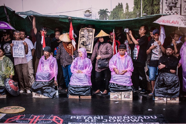 Perjuangan masyarakat Kendeng memprotes pembangunan pabrik semen yang ditampilkan dalam film WatchDoc dan Gecko Project/Leo Plunkett bagi Gecko Project Mongabay