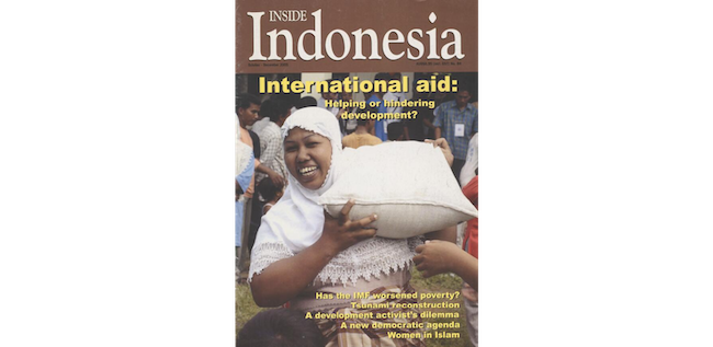 In the second article, Bob queries the use of the term ‘partners’ for the recipients of aid: ‘Is partnership possible when one party controls all the resources and the other desperately needs them to pursue its goals?’ He raises the dilemma of whose strategies are being followed and whether ‘Indonesian groups doing the actual work often tend to be seen as mere functionaries in the broader strategies of international development agencies’. Finally, he raises the issue of corruption, stating that fighting corruption is as important a social justice issue as opposing human rights abuses or environmental destruction.