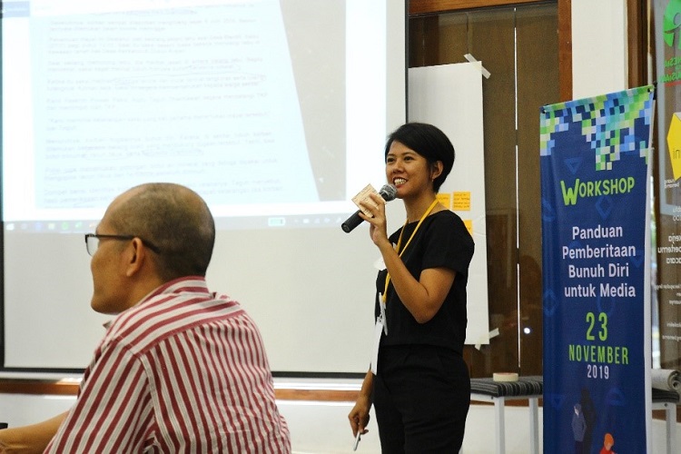 In November 2019, on International Survivor of Suicide Loss Day, the coalition conducted a workshop for mid-career journalists, editors, and others. Agung Dharmajaya, representative of the Press Council, gave the keynote, and called for a national meeting of editors-in-chief to be organised. During the workshop, we discussed the role of the media in propagating the Werther effect and the Papageno effect (protection against further suicides). Gading Yonggar Ditya of LBH Pers reassured participants that the guidelines were not intended to violate press freedom and endorsed the educational role of the media. Widia Primastika of AJI Jakarta and Caecilia Tiara of CNN Indonesia discussed best practice in suicide news reporting. Both media organisations have strict policies on suicide coverage, including requirement that it be treated as a mental health condition and not as a crime or immoral act. We also invited people with lived experience to talk, and the new head coordinator of Into The Light Indonesia, Alfonsus Bayu Dirgantara, shared his experience of losing a friend to suicide and how the media had influenced his friend’s suicidal ideation.