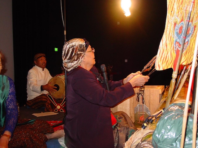 Another question addressed at this time is the portrayal in performance of gender relations and women’s social roles. Helen Pausacker in ‘Limbuk wants to be a dalang’ focuses on the Javanese shadow puppet theatre, wayang kulit. She reports that women puppeteers (the dalang) are very rare, and seventy percent of the characters in performances are male. Women characters are the wives and sweethearts of males, along with two clown maidservants, Limbuk and her mother Cangik. A major concern in performances by male dalang is finding a husband for Limbuk, while in several shows by women Limbuk asserts that she’s not interested in marrying, she wants to be a dalang herself.